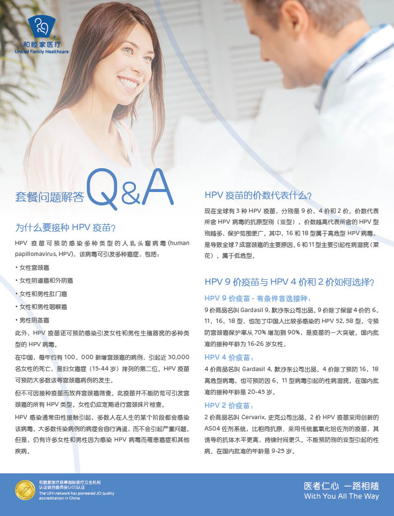 和睦家医疗自1997年建院以来,坚持国际化医疗模式,由全科医生为患者及其家庭提供预防保健、疾病诊断的全面健康管理。其中重要的服务内容之一就是定期评估成人疫苗接种情况,如成人在儿童时期没有接种所有推荐的疫苗、新疫苗出现、人体免疫力减弱、到罕见传染病流行地区旅行或工作等,和睦家医生将为患者制定相应的疫苗接种计划。